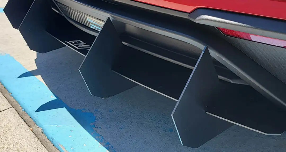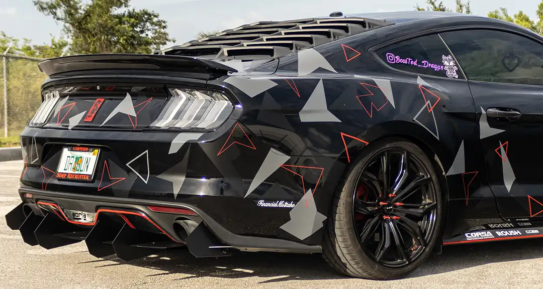Premium, adjustable S550 Mustang rear diffuser, custom-designed to match your Mustang's contours and make it stand out. Adds an aggressive, low-look aesthetic that will turn heads wherever you go.