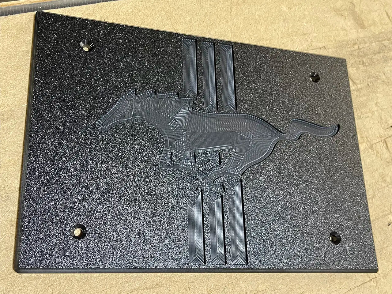 Engraved Center Plate Option: Custom logos and text can be engraved into an HDPE center plate that mounts directly to the X-brace. Examples: Mustang, Coyote, Boss 302, your logo or text. Can choose the option to have the engraving painted too. Email your design idea to info@emp.parts once you place the order.