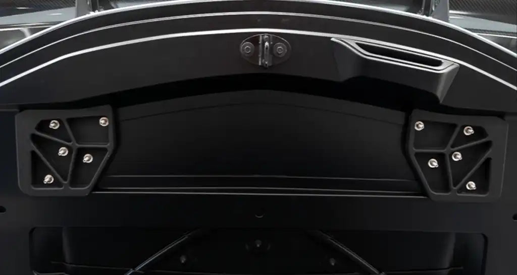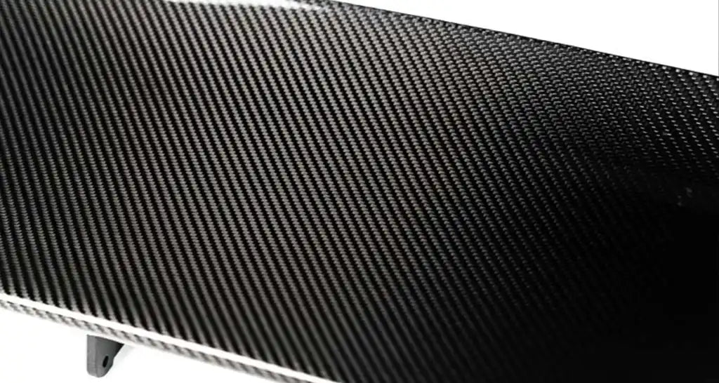 • Alerón trasero de fibra de carbono: sarga 2x2 de carbono preimpregnado, curado en autoclave, transparente de alto brillo para automoción