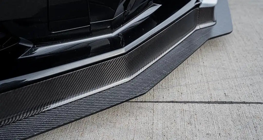 Made of real carbon polyweave and carbon fiber, this C8 front lip is designed to look and feel good on the road or track
